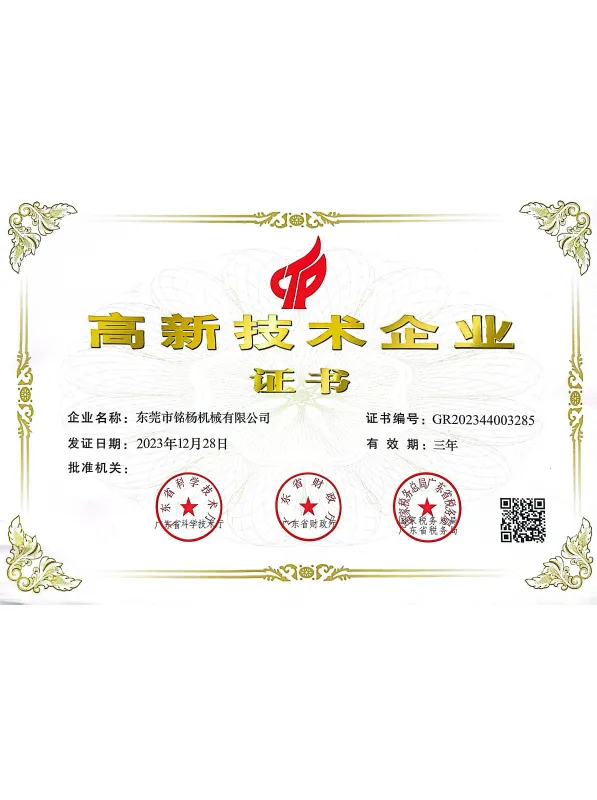 Mingyang machinery was established in 2009. Its head office is located in Shijie Town, Dongguan City, Guangdong Province, which is a famous manufacturing city in China and one of the core cities in the the Pearl River Delta. Its subordinate offices are located in Chengdu, Sichuan Province, and Dongtai, Jiangsu Province. Our company is a national high-tech private technology enterprise that integrates research and development, manufacturing, and sales. The product is widely used in the 3C (computer, communication, electronics) industry and field. We are committed to the development and design of automated products to improve production efficiency, enhance product traceability, reduce the number of workers and labor intensity, lower production costs, and improve the working environment. Our mission is to achieve comprehensive goals of low-carbon, environmental protection, energy conservation, and high efficiency.